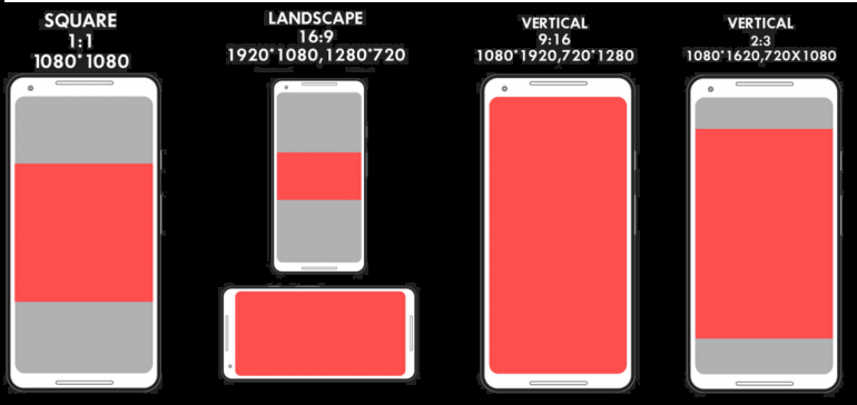 To appear optimally across different devices, prepare video assets in these vertical dimensions / aspect ratios: 16:9, 2:3, 1:1 or 9:16 (recommended).