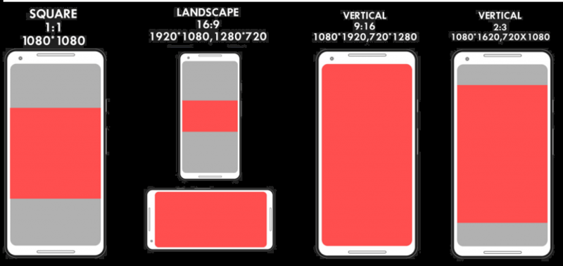 To appear optimally across different devices, prepare video assets in these vertical dimensions / aspect ratios: 16:9, 2:3, 1:1 or 9:16 (recommended).