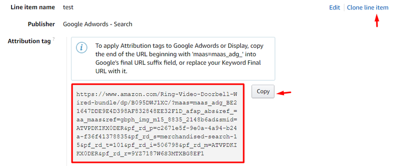 Thus, Amazon creates a unique URL with an attribution tag which should be implemented on the chosen platform (e.g., Google Ads or Facebook).