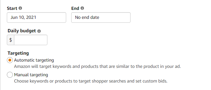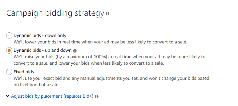Like Google, bidding can either be done manually or by using one of Amazon’s automated strategies.