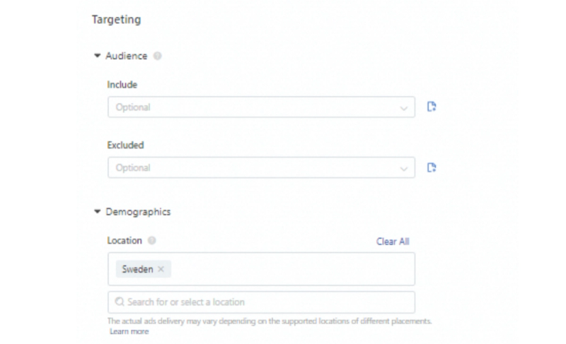 At an ad group level, you can set specific ad placements, promotion type, target audiences, campaign budgets, schedule, optimization goals, and bids for each ad group.
